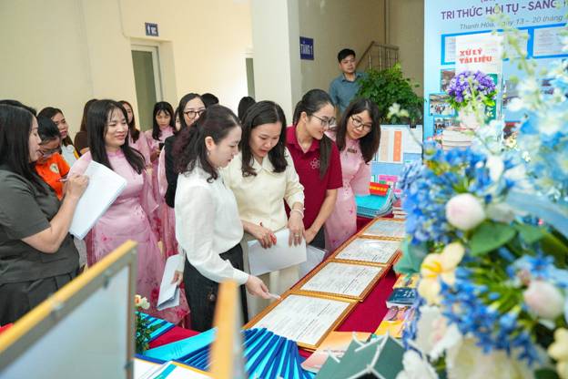 Sau phần trao thưởng Ban Giám hiệu Nhà trường, Hội đồng sư phạm, đại diện các đơn vị trực thuộc, cùng đông đảo giảng viên và sinh viên tham quan trưng bày.
